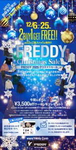 今日はFREDDY JAPANより、クリスマスセールのお知らせです♪(土日は携帯触りづらく遅くなりました…)