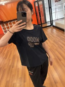 ですが、両手を上げると服が持ち上がるので、私はこの大きさが丁度いいかなぁという感じがします!