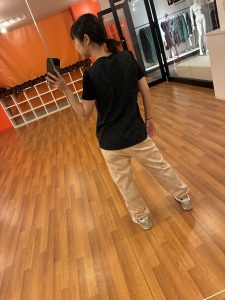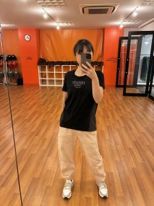 普段着でピッタリ目で着るならXSだけど、ストリートのレッスンが多い私はSで丁度いいかな